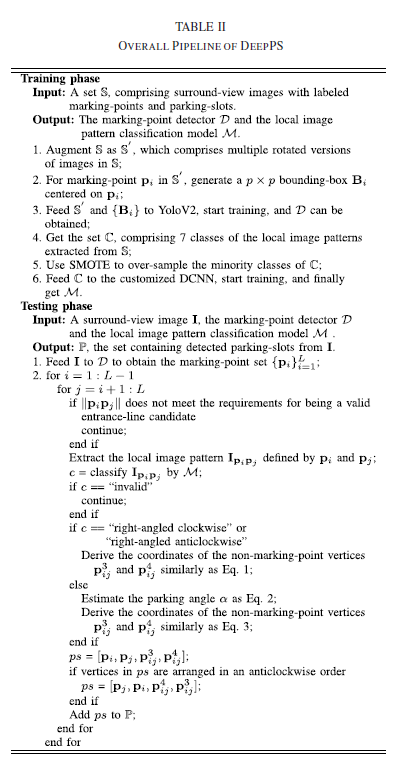 이 논문은 DCNN을 기반으로 주차 구역(parking-slot)을 탐지하는 모델을 제안한다. 이 모델을 여기선 DeepPS이라 명칭한다. 이 모델의 주요 단계는 다음 두가지로 나뉜다.